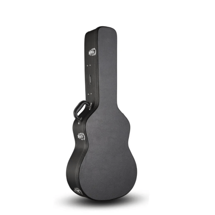Deze budgetvriendelijke harde koffer voor akoestische gitaren met een kleine klankkast is geschikt voor zowel staalsnarige als nylonsnarige gitaren. De binnenkant is gevoerd met HardCell foam om de trillingen en schokken tijdens transport op te vangen. Het schuim is afgewerkt met prachtig zacht pluche. De buitenkant is gemaakt van 6 millimeter dik 3-laags multiplex, en afgewerkt met vinyl. In de koffer bevindt zich ook nog een vakje waar een aantal kleine accessoires in passen, zoals een capo, set snaren, slide of een stemapparaat. Kortom: veel koffer voor weinig geld.