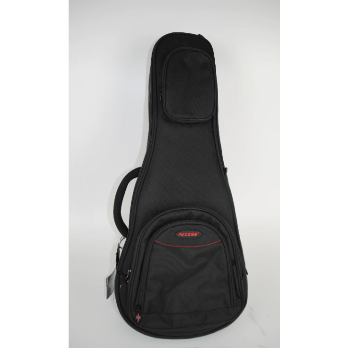 Een tas voor je banjo met de bescherming van een koffer, dat is wat deze Access Stage 3 is! De dikke gewatteerde tas is voorzien van extra polymeer panelen voor nog betere bescherming. De buitenkant van de tas is van 1200 denier polyester materiaal, wat ook nog eens waterafstotend is. Verder is de tas voorzien van een verstelbare microball steun voor de hals, en een groot vak voor accessoires als snaren, capo's, stemapparaten en dergelijke. De draagbanden zijn ergonomisch gevormd en gevoerd.