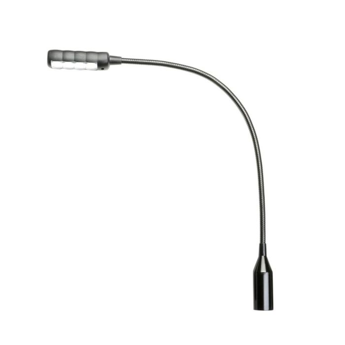 De Adam Hall SLED 1 ULTRA XLR 4 is een zwarte zwanenhalslamp met 4 heldere LED's en een 4-pins XLR-connector. Hij werkt op 12 of 48 volt fantoomvoeding. De zwanenhals van 30 cm is zowel flexibel als stevig; de aan/uit-schakelaar is gemakkelijk bereikbaar op de kop van het lampje. De vier COB LED's zeer helder en geven 40 lumen daglicht. Omdat het LED lampen betreft, gaan deze zeer lang mee.