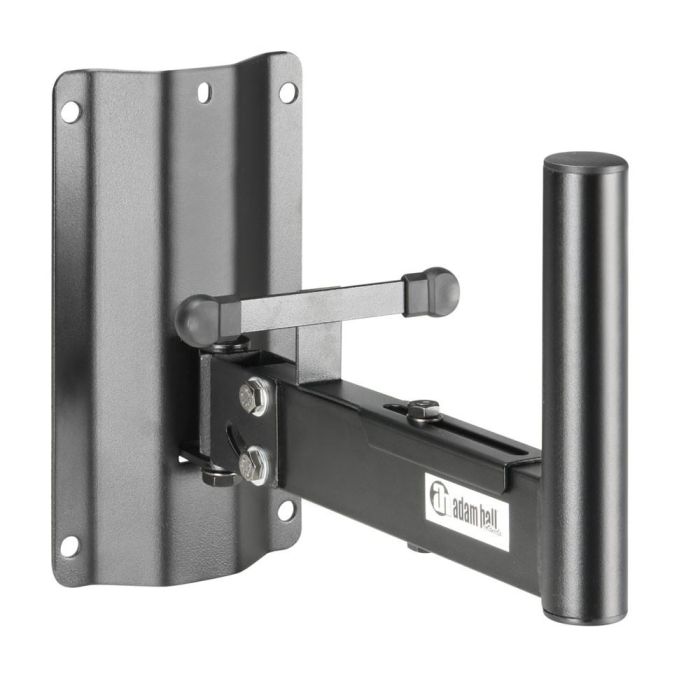 Luidsprekerbeugel voor wandmontage met montagepaal. Voor luidsprekers met standaard flens. Met verstelbare kanteling.