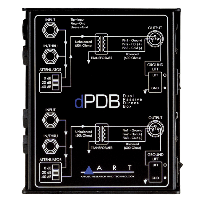 De ART dPDB is een tweekanaals passieve DI-box waarmee je ongebalanceerde instrument-, lijn- of luidsprekersignalen kunt omzetten naar gebalanceerde XLR-uitgangen. Ideaal voor gebruik op het podium of in de studio. Elke ingang stuurt het signaal naar een gebalanceerde, transformator-geïsoleerde XLR-uitgang en een parallelle Thru-uitgang, zodat je gelijktijdig kunt doorlussen naar een versterker op het podium. Beide kanalen zijn voorzien van een ground-lift schakelaar om brom te voorkomen, en bieden tot 40 dB demping.