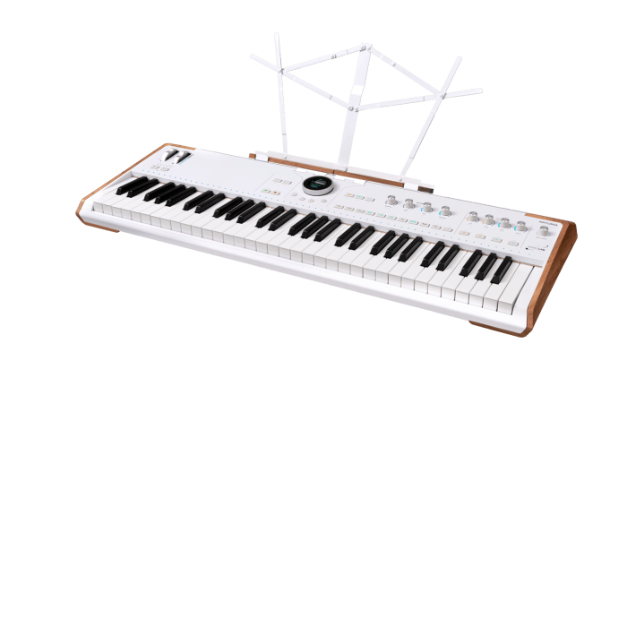 Plaats je bladmuziek of tablet op deze snazy bladmuziek houder van Arturia speciaal ontworpen voor de AstroLab. Deze gecombineerd met de Arturia Woodenlegs maakt jouw Astrolabs keyboard helemaal af.
