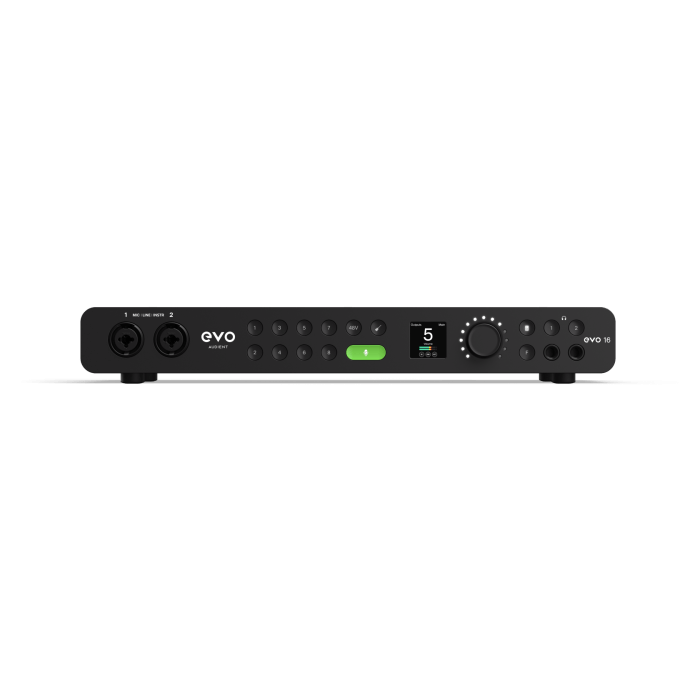 De EVO 16 is een waar powerhouse aan mogelijkheden in een compacte behuizing. Met maarliefst 8 pre-amps (mic/line inputs) en twee JFET instrument inputs heb je met enkel de EVO 16 al meer dan genoeg I/O om een kleine band op te nemen of een volledig akoestisch drumstel. Of gebruik de line out en line in combinatie om je favoriete outboard gear te gebruiken tijdens het mixen.