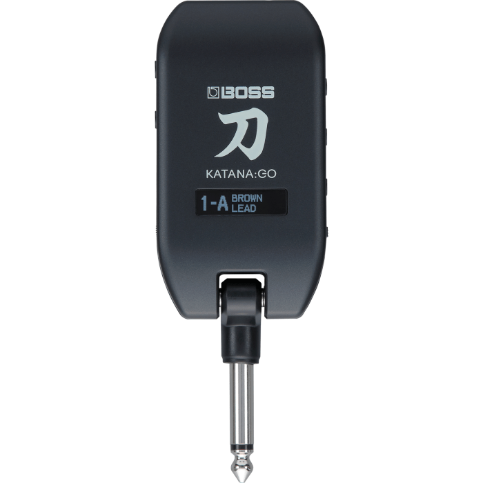 De KATANA:GO levert een premium sound voor dagelijkse speelsessies zonder gedoe met versterkers, pedalen en computerinterfaces. Plug hem gewoon in, sluit oortjes of een hoofdtelefoon aan, roep een geheugen op en begin te rocken. Ingebouwde controls bieden toegang tot volume, geheugenselectie en andere essentiële functies; en je kunt gemakkelijk het huidige geheugen en de tuner bekijken met het ingebouwde display. De oplaadbare batterij biedt tot vijf uur ononderbroken afspeeltijd en de geïntegreerde 1/4-inch plug kan worden ingeklapt om zo een pakket in zakformaat te creëren dat overal mee naartoe kan worden genomen.