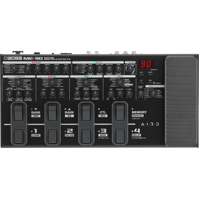 De ME-90 is het meest geavanceerde ME-model tot nu toe en biedt uitzonderlijke audiokwaliteit met 24-bit AD/DA en 32-bit floating point processing, AIRD-versterkermodellen van topkwaliteit, IR-laden, een effectenlus en nog veel meer. De Boss ME-90 vervangt de wereldberoemde ME-80.