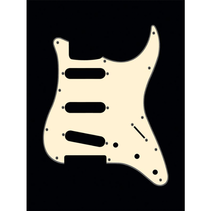 Pickguard, Stallion, 3 Ply, Vintage White, Standard, SSS, 3 Pot Holes, 3-5 Switch