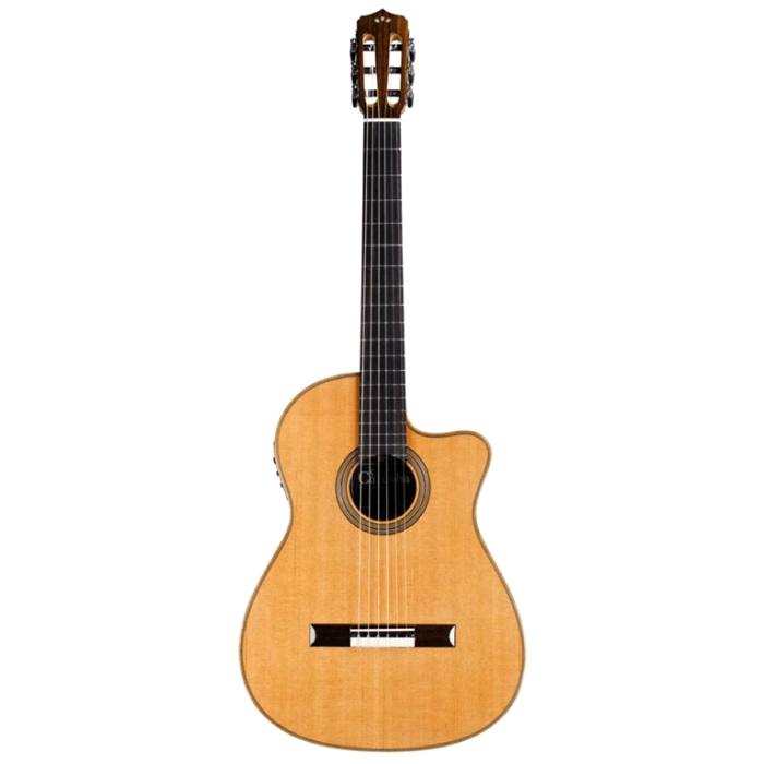 De Cordoba Fusion lijn is een goede middenlijn tussen een lichte bespeelbaarheid en warme klank van een klassieke gitaar en de iconische ‘vlugge’ hals van een westerngitaar. De hals is 48 mm in plaats van 52 mm. Ook heeft de Cordoba Fusion Orchestra CE een lichte radius, wat uniek is voor een klassieke gitaar. Normaal wordt dit alleen gebruikt bij westerngitaren en elektrische gitaren, dit draagt bij aan alles wat de Fusion series hoort te zijn. Een klassiek instrument met moderne touches. Deze Orchestra is zowel akoestisch te gebruiken als uitversterkt met zijn ingebouwde Fishman Presys Problend. Een knalheldere en sprankelende sound. Deze Fusion heeft een massief ceder bovenblad.