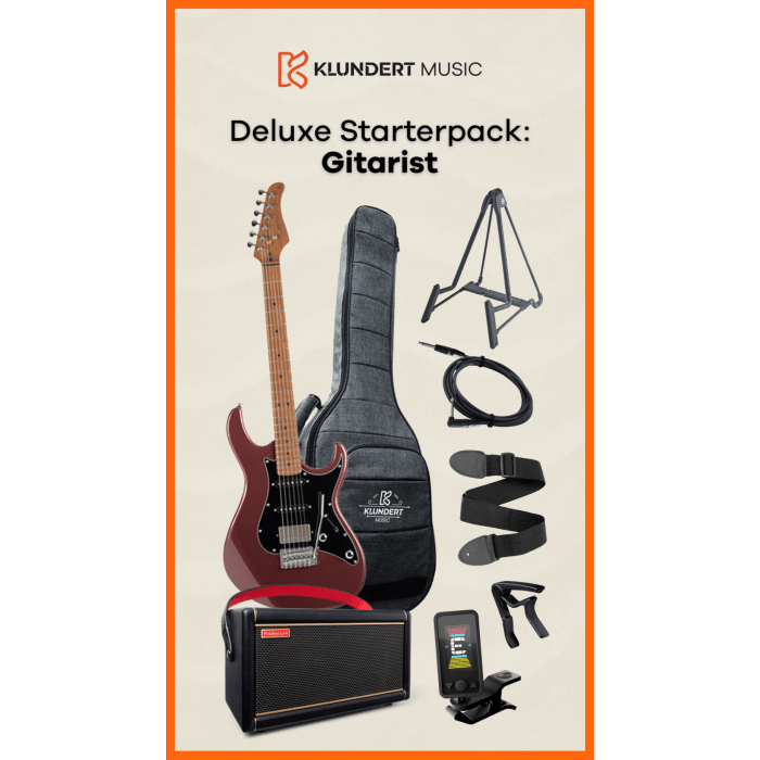 De Deluxe Startersset bevat de favoriete keuzes van onze gitaar specialisten Thijs en Jeroen voor starters. Hiermee kies je dezelfde artikelen als wij jou ook zouden adviseren wanneer je bij ons in de winkel bent voor advies. De meest veelzijdige, breed inzetbare en kwalitatieve instrument, binnen een starters budget. Of nu jazz, pop, blues of keiharde metal wilt spelen, het kan met deze set.