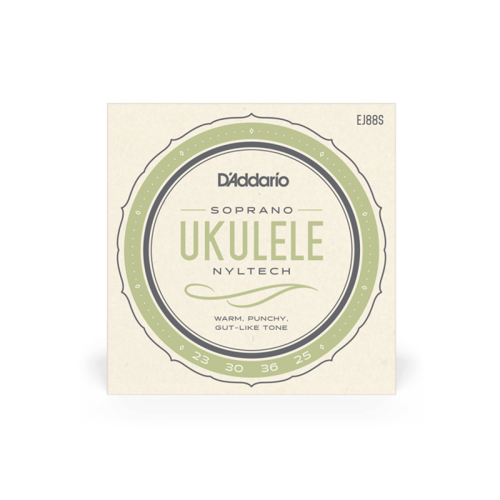 D'Addario EJ88S snarenset voor sopraan ukelele. Elke snaar in deze set is gemaakt van D'addario's exclusieve Nyltech-materiaal en geoptimaliseerd voor standaard G-C-E-A stemming