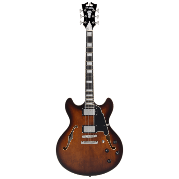 Voor de 2023 collectie heeft de Premier Hollowbody Series een significante upgrade gekregen. Zo is deze collectie standaard uitgerust met USA Supro Bolt Bucker elementen; een hoogwaardige klassieke PAF style humbucker. Daarnaast heeft D'angelico nog verder de puntjes op de i gezet mbt de afwerking en de selectie van materiaal. Opvallend zijn de details zoals de rosewood potmeter knopjes en het zeer donkere, bijna ebben-achtige, pau ferro wat voor de toets is gebruikt. Daarnaast vind je op deze nieuwste uitvoering van de Premier nog altijd de Grover Super Rotomatic's. Al met al wordt het verschil met de duurdere Deluxe of Excel modellen nog maar klein! Stijlvol afgewerkt in Brown Burst