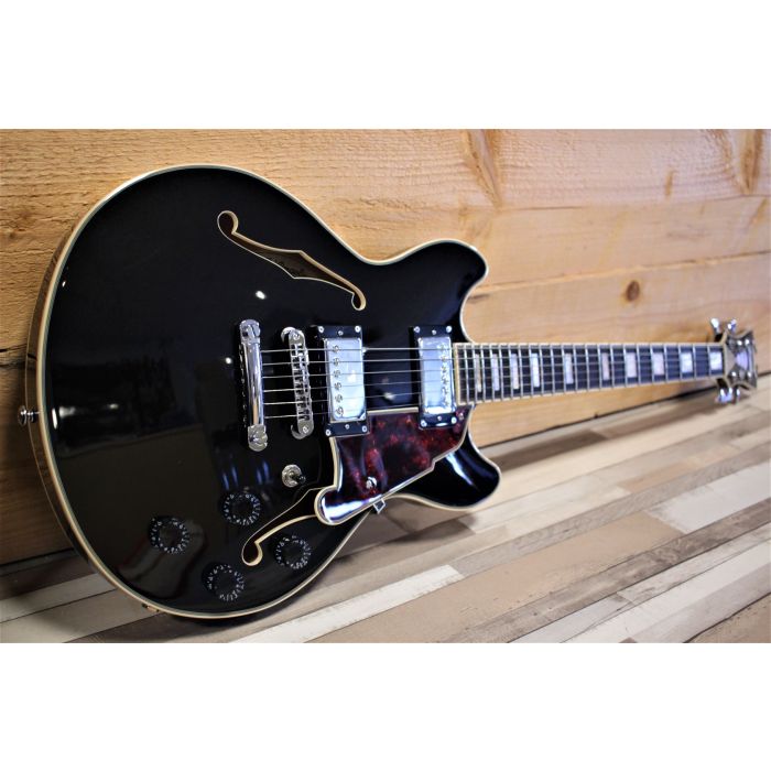 De Premier Mini DC is D'angelico's entry-level double cut, centre block / semi-hollowbody. Oftewel; een ES-type type volgens klassiek recept, maar wel erg goed gedaan. ES-339 om precies te zijn, dus een relatief klein-formaat voor een hollowbody.