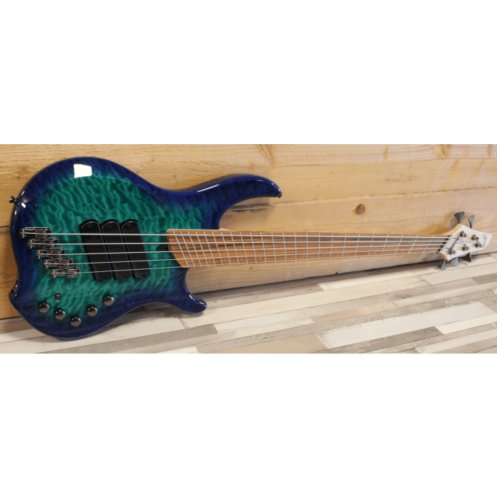 De body is gemaakt van swamp ash en heeft -in de meeste gevallen- een quilt maple fineer top. De 5-delige esdoorn hals heeft naar keuze een esdoorn of een pau ferro toets en uiteraard vind je ook bij deze bas de multiscale opzet. Standaard op alle Combustions is de actieve EMG voorversterker met -twee of drie- Dingwall FD-3N pickups. De twee pickup configuraties kunnen als een humbucker (naast elkaar) of als een Jazz Bass (zoals Dingwall's Super-J) zijn opgesteld. Combustion bassen zijn verkrijgbaar als 4-, 5- of 6-snarig.