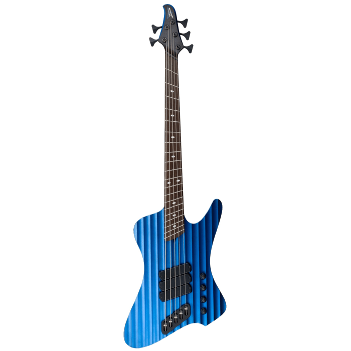 De body volgt het D-Roc-ontwerp, met een ruime cutaway die extra toegang biedt tot de hogere frets. Hij is gebouwd van Fijian mahonie, terwijl de top zodanig is uitgehouwen dat hij lijkt op geborsteld of machinaal bewerkt aluminium. Onder podiumlicht ontstaat zo een subtiel spel van kleuren. De gesculpteerde contouren, samen met de wenge hals en toets, geven het instrument een moderne en agressieve uitstraling. Alsof de bas uit massief metaal is gefreesd, maar met de warme resonantie van handgemaakt hout.