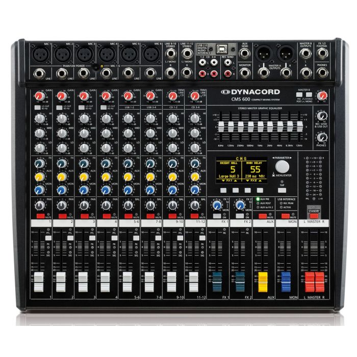 De mengtafel heeft een ingebouwde USB audio-interface en effectprocessor. Op de effectprocessor kun je twee effecten (bijv. galm of delay) instellen, waarna je het totaalvolume ervan per kanaal afstelt. De CMS-600 is een zeer degelijk gebouwde mengtafel met 6 mono-kanalen voor microfoon-signalen of normale lijnsignalen. Daarnaast zijn er twee stereo-kanalen aanwezig, waarop je stereo apparaten aansluit (zoals een audiospeler, tablet of een keyboard). Via de stereo master-output stuur je het geluid naar actieve speakers, waarbij je de keus hebt uit XLR en 6.3 mm2 jack.