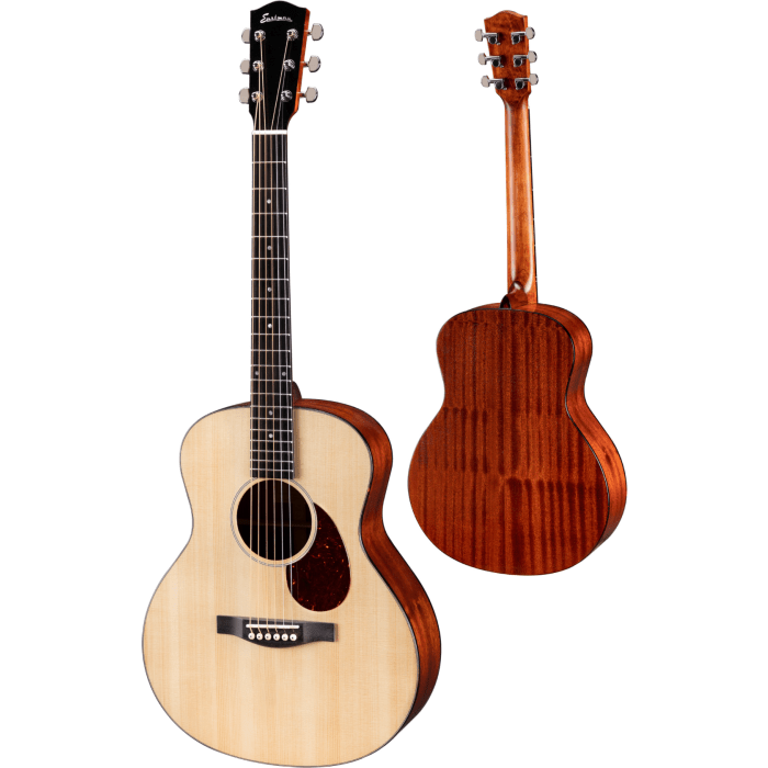 De travelgitaren van Eastman zijn je ideale reisgenoot onder alle omstandigheden. Maar ondanks zijn bescheiden formaat klinkt deze volledig massieve acoustic zeer volwassen! Het massief Spruce bovenblad en de massief Sapele achter- en zijkanten zorgen voor een gebalanceerd geluid wat grootser is dan zijn formaat doet vermoeden.