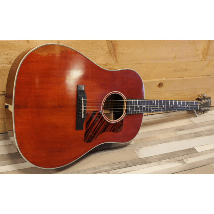Slope shoulder dreadnought zijn simpelweg aantrekkelijk...dit model ademt de geschiedenis van de akoestische flattop western gitaar. De E10SS is Eastman's versie van een J50 met de iconische J45 bodyvorm. Hij heeft een massief adirondack spruce bovenblad, massief mahonie zij- en achterkant, 3-delige mahonie hals, ebbenhouten toets en handgesneden scalloped X-bracing. Hij klinkt vet, "bassig" en luid; de ultieme keuze voor de flatpickers, strummer en begeleider. Helemaal raak is de smaakvolle aged look van deze vintage antique varnish / "V" versie!