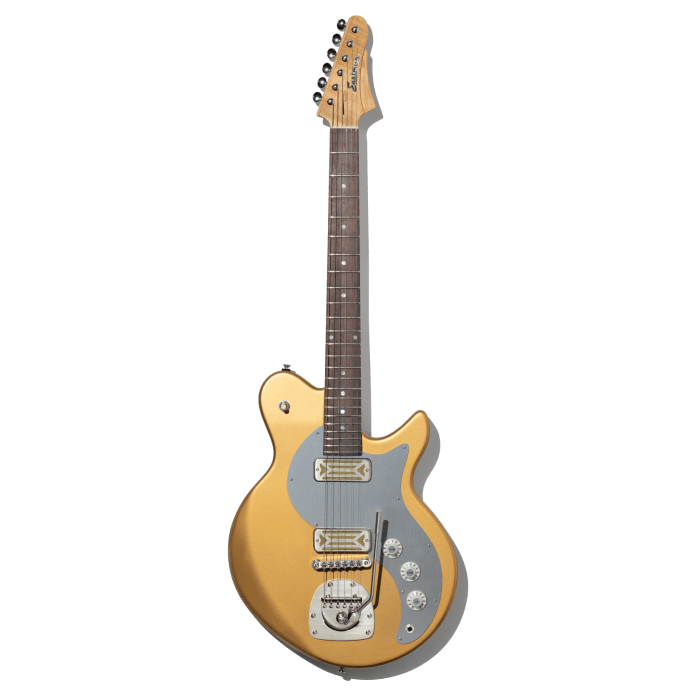 - Pickups: Tonerider Soapbar Mini Humbucker met Custom Gold Foil