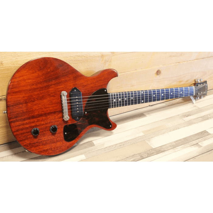 De enkele Lollar P90 klinkt open en fel, maar toch ook vet en romig. Deze double cut variant van de SB55 heeft een iets slankere hals dan de single cut versie!