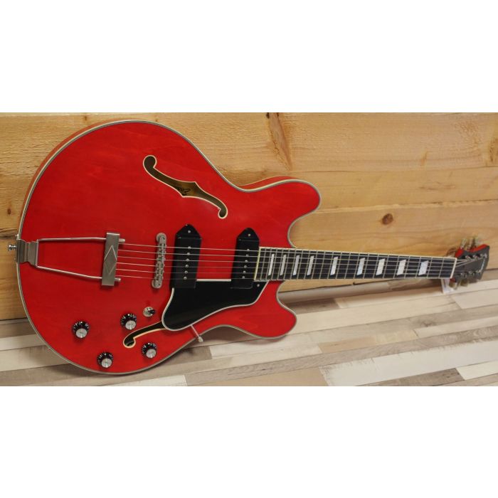Man man... alleen al vanwege het uiterlijk, zou je deze aan je collectie willen toevoegen. De T64/TV-T is een Casino-stijl, full hollow thinline met Lollar dogear P90's. De body is gemaakt van gelamineerd esdoorn, hij heeft een esdoorn hals en een ebben toets met een 12" radius. De scale van de gitaar is 24.75". Het geluid is luchtig en helder, maar toch romig en zacht. Geweldig voor traditionele muziek of dromerige popsongs.