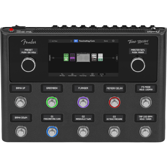 Tone Master Pro bevat meer dan 100 van 's werelds populairste versterkers en effecten, waaronder alle klassieke Tone Master Fender-modellen, het eerste officieel gelicentieerde EVH 5150 III Stealth-model en andere klassiekers waar je niet zonder kunt en die allemaal perfect zijn nagemaakt met behulp van ons eigen Tone Master Modeling-proces. De lichtgewicht, robuuste en podiumvriendelijke vorm van de Tone Master Pro is even mooi als functioneel. Met een full-color touchscreen, verbluffende graphics en een intuïtieve gebruikersinterface was het nog nooit zo eenvoudig en inspirerend om de perfecte toon te kiezen.