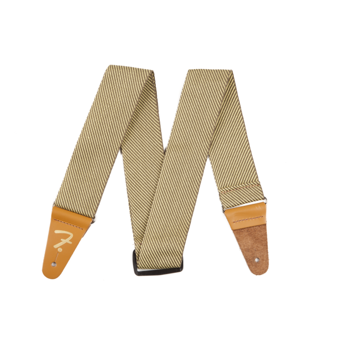 - Goudkleurig Fender "F" logo in reliëf op de versterkte lederen uiteinden voegt een extra cosmetische touch en compromisloze duurzaamheid toe.