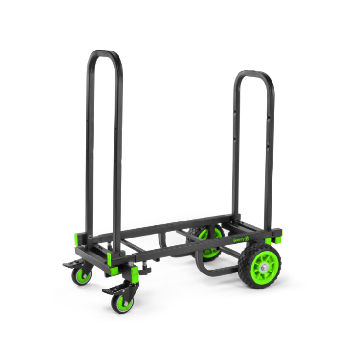 De Gravity Cart M 01 B multifunctionele trolley die tot 150 kilo aan spullen draagt voor je. Hij is ergonomisch zo ontworpen dat je je music gear ermee vervoert zonder je rug te belasten en de cart zelf is ook licht van gewicht. Door de twee stuurbare wieltjes is het makkelijk manoeuvreren. Ook is de trolley in en uit elkaar te schuiven zodat je zelf het draagvlak bepaald óf hem in elkaar schuift en compact ergens opbergt.