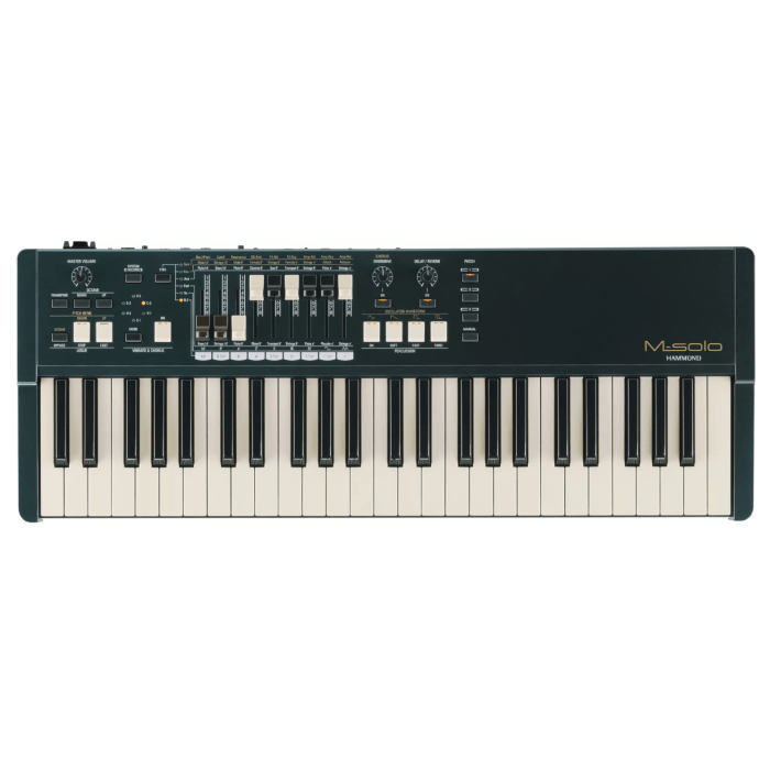 De Hammond M-solo is een compact stage orgel. De M-Solo is gemaakt voor organisten onderweg en is de meest compacte, reisvriendelijke Hammond ooit gemaakt. Deze kleine, 49-toetsen krachtpatser mag dan een kleine voetafdruk hebben, maar hij heeft een groots geluid waar organisten dol op zullen zijn! De M-Solo heeft de basis van klassieke orgels met een geweldig klinkende B-3 toonwielorgel, drie transistororgels en negen drawbars. Hij bevat tevens een string synthesizer (jaren '70-stijl) en een polyfone synth met tweeoscillatoren voor nog meer flexibiliteit op het podium en in de studio.