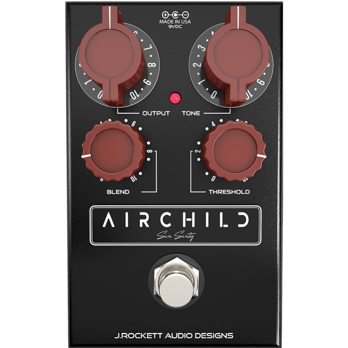 De Airchild Six Sixty Compressor is J.Rockett's sonische interpretatie van de beroemde vintage 660 studiocompressor. Consequent beschouwd als de beste compressor ooit gemaakt. Jarenlang werden de originele Fairchild 660 en 670 (Stereo) compressoren veelvuldig gebruikt in studio's. Dit inspireerde J. Rockett om die sonische handtekening aan te bieden aan gitaristen over de hele wereld.