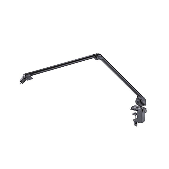 De K&M 23865 is een schaararm microfoonstatief. Deze bureau-arm van König & Meyer heeft een mooi ontwerp en is voorzien van een 3/8 of 5/8 schroefdraadverbinding voor het plaatsen van je microfoonklem. Deze innovatieve tafelklem laat je snel een stabiele verbinding met het oppervlak maken en op deze manier de gemonteerde microfoon netjes uitlijnen, zowel in studio-omgevingen als op multimedia-werkplekken. De microfoonarm heeft een maximale draaggewicht van 1.5 kg. Dus ook zwaardere microfoons kan hij gemakkelijk aan. Verder kan het statief aan zowel buizen als gladde oppervlakten worden bevestigd.