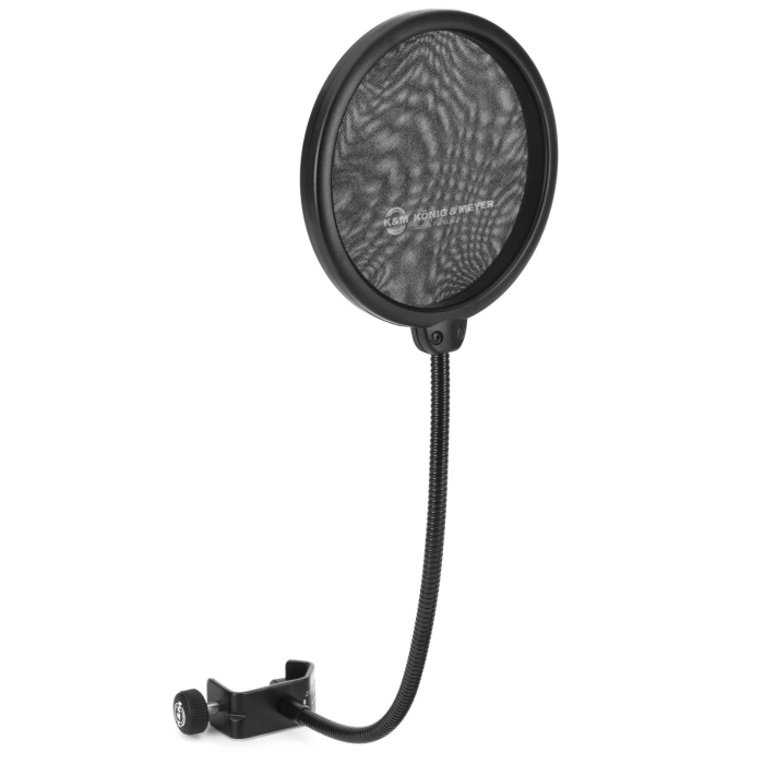 De Konig & Meyer 23956 Popkiller is een professionele popfilter die plofklanken effectief onder controle houdt tijdens zang- en spraakopnames. Dankzij het slanke frame blijft je zicht vrij, zodat aanwijzingen van een producer of signalen van medemuzikanten goed zichtbaar blijven.