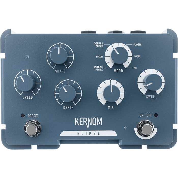 De nieuwe Kernom ELIPSE is een high-end modulatiepedaal dat de warmte van analoog geluid combineert met de precisie van moderne digitale bediening. analoge effecten-van weelderige, soepele chorussen en warme phasers tot straalachtige flangers en ritmische tremolo's. Met ELIPSE krijgen muzikanten een grenzeloze speeltuin van modulatie, allemaal verpakt in de warmte van echt analoog geluid met de precisie van moderne digitale bediening. Hij bevat een breed scala aan modulatie-effecten: tremolo, harmonische tremolo, rotary speaker, vibrato, chorus, tri-chorus, flanger, phaser en Univibe.