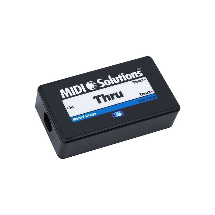 De MIDI Solutions MultiVoltage Thru is een 1-in 2-uit MIDI Thru Box. Alle MIDI-berichten die op de MIDI-ingang verschijnen, worden doorgegeven aan beide MIDI Thru-uitgangen. Actieve circuits zuiveren elke skewing van MIDI databits die is opgetreden op de ingang, wat zorgt voor een betrouwbare werking in opstellingen die serieschakeling of lange kabellengtes vereisen.