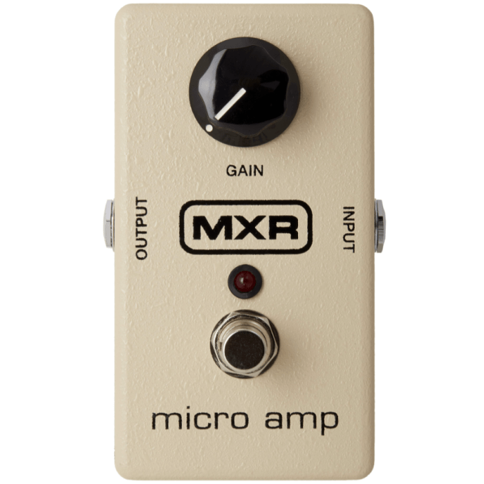 De MXRMicro Amp is al jaar en dag een van onze favoriete boosters. Of liever gezegd; "line driver", want feitelijk is de Micro Amp een pre amp met een zeer hoog oversturingsplafond (headroom) en een transparante en breedbandige versterking die hierom in de breedste zin van een booster ingezet kan worden. En vooral; heel goed werkt op diverse posities in je signal chain.