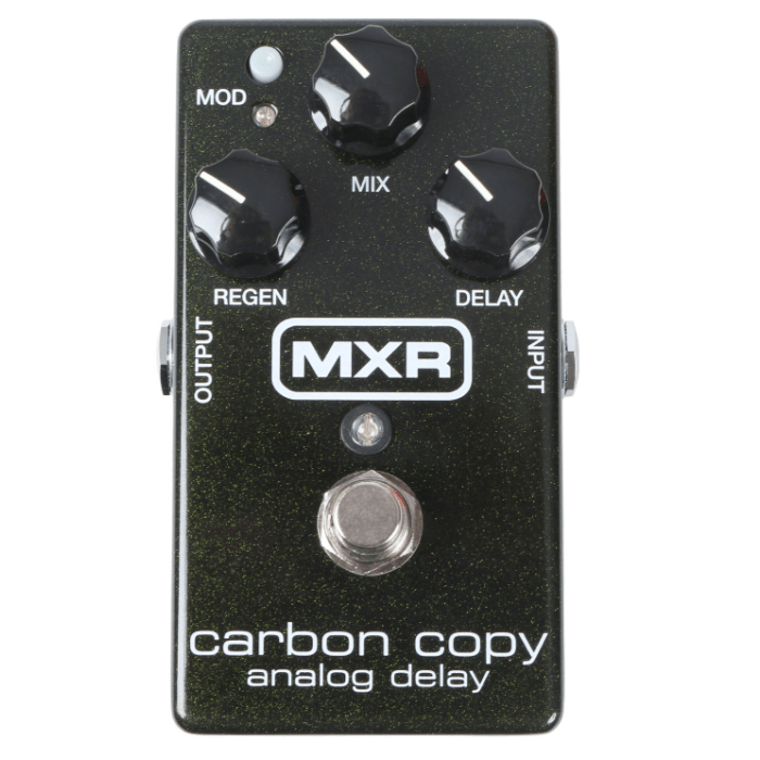 De MXR Carbon Copy is een authentiek warm klinkend, analoog delay-pedaal met een delay tot wel 600 ms. Dit pedaal geeft je gitaar-geluid van die ouderwetse 'badkamer'-echo's of creëert de heerlijk trage Pink Floyd-achtige delays. Het gitaarpedaal is instelbaar via drie draaiknoppen en twee interne regelingen.