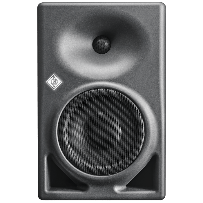 De Neumann KH 150 is een actieve studiomonitor met referentieprestaties die ongekend zijn voor zijn compacte formaat. Dit maakt de KH150 ideaal voor zowel nearfield als midfield gebruik in kleine tot middelgrote studios. De nieuwe 6,5 inch woofer, het resultaat van meer dan drie jaar intensief onderzoek en ontwikkeling, is geïntegreerd in een zorgvuldig ontworpen 20-liter basreflexkast, waardoor deze state-of-the-art monitor een indrukwekkend diepe en strakke basweergave tot 39 Hz en een maximale SPL van 118 dB bereikt. De speciaal ontworpen 1 inch tweeter zorg voor een transparante weergave tot 21 kHz. Deze hi-end drivers, aangedreven door respectievelijk 145W en 100W energie-efficiënte klasse D versterkers en bijgestaan door Neumann's MMD (Mathematically Modeled Dispersion) waveguide, leveren een zeer hoge nauwkeurigheid, met brede sweetspot en minimaliseren hinderlijke bureau reflecties.