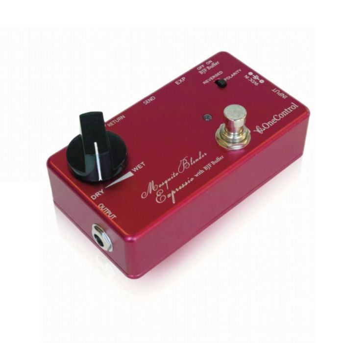 De One Control Mosquito Blender Expressio is een uitgebreide en verbeterde versie van de originele 'Mosquite Blender'. Mensen wilden effecten uit de FX-loop geleidelijk kunnen inmengen of gewoon verschillende hoeveelheden verzadiging kunnen hebben tijdens een live-optreden. Een expressiepedaalingang was de beste oplossing. Nu kun je de verhouding tussen wet en dry signaal regelen met de bedieningsknop of handsfree met een optioneel expressiepedaal. De Blender beschikt ook over een faseschakelaar, waarmee je de fase van de loop kunt omkeren, zodat je out-of-phase geluiden kunt vermijden of ze bewust kunt creëren. Bovendien werd een selecteerbare BJF Buffer geïnstalleerd om dit pedaal nog veelzijdiger te maken.
