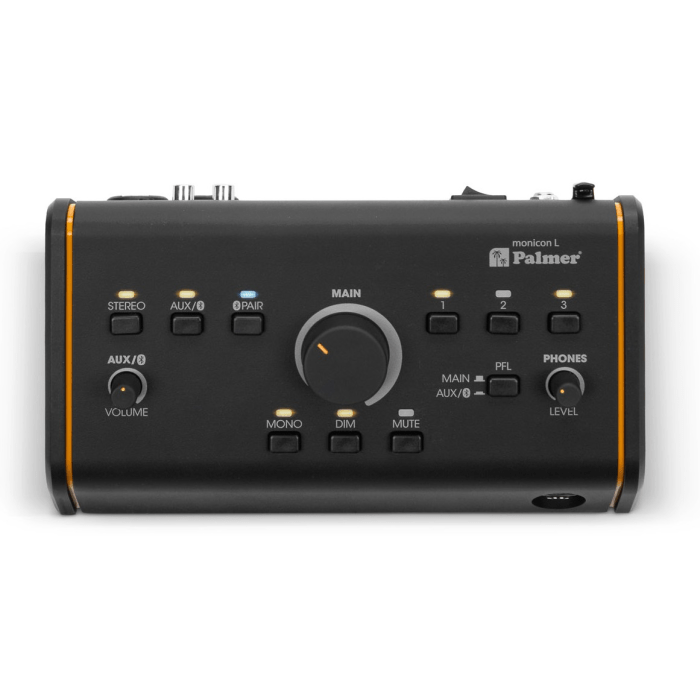 De MONICON L biedt handige studiowerkfuncties zoals 'Mono', 'Dim' en 'Mute' voor snel en effectief schakelen tijdens het mixen of afluisteren. Met een aparte hoofdtelefoonuitgang en PFL-functie luister je ingangen af zonder invloed op de hoofdmix – ideaal voor nauwkeurige monitoring. De ingebouwde voeding voorziet Bluetooth, de hoofdtelefoonversterker en de derde uitgang van stroom, terwijl het signaalpad analoog blijft voor een heldere, vertragingvrije audioweergave.