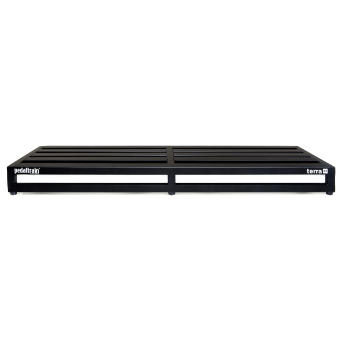 Pedaltrain Terra 42 SC is een zeer groot pedalboard van Pedaltrain waar heel veel pedalen op kunnen. Grote pedalen kan je bijvoorbeeld op de bovenste rij plaatsen en de pedalen met een normaal formaat op de onderste rij. Je kunt er tot drie rijen pedalen (normaal formaat) boven elkaar kwijt.