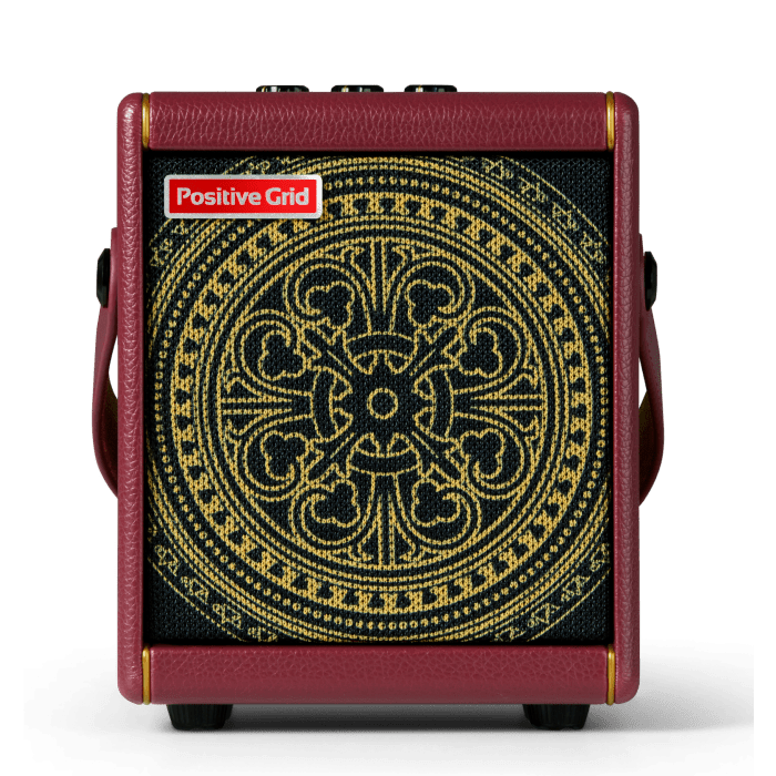 De Positive Grid Spark Mini Vai is niet alleen qua klank afgestemd op de iconische stijl van Steve Vai, maar ook visueel een echte eyecatcher. In plaats van het standaard zwarte of witte ontwerp is deze speciale editie uitgevoerd in diep bordeauxrood met een unieke Mandala grille cloth. Het geheel wordt compleet gemaakt met een bijpassende bordeauxrode instrumentkabel, voorzien van het officiële “Vai” logo. M