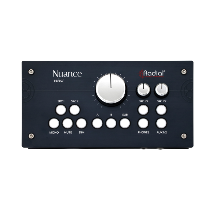 De Radial Nuance Select is een hoogwaardige studio monitorcontroller die ontworpen is voor maximale geluidskwaliteit. Deze controller levert een volkomen transparant audiosignaal, zodat je precies hoort wat er in je mix gebeurt — zonder kleuring of vervorming. Dankzij de extreem lage ruisvloer blijft elk detail behouden, ideaal voor kritische luisteromgevingen.
