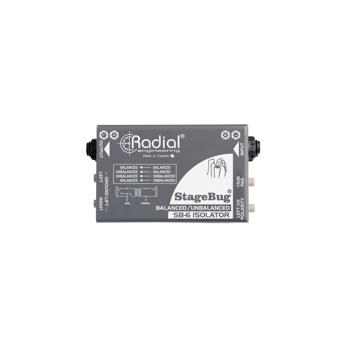 De Radial StageBug® SB-6 is een hoogwaardige 2-kanaals passieve audio-isolator, ontworpen voor zowel gebalanceerde als ongebalanceerde signalen en werkt effectief bij het elimineren van ruis bij gebruik met instrumenten, consumentenelektronica en professionele line-level apparaten.