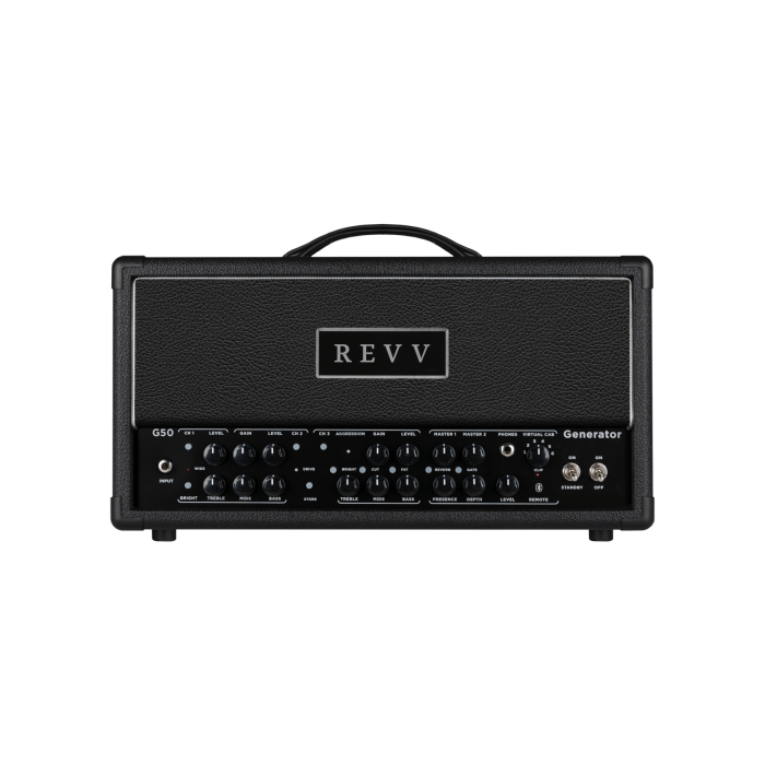 G50 is de nieuwe hotrod met hoge versterking voor veeleisende rock- en metalgitaristen. De G50 is een compacte 50 watt EL34 krachtpatser met als middelpunt het Purple-kanaal van Revv: het iconische geluid van moderne rock en metal. Het Purple-kanaal van Revv staat bekend om zijn mixklare brutale high gain toon waarvoor geen overdrive nodig is. 50 watt versterkers zijn niet alleen geliefd bij veel gitaristen vanwege hun lichtere gewicht en compacte formaat, maar ook vanwege hun unieke klank en gevoel. G50 maakt gebruik van het krachtige 50 watt platform om populaire modificaties, speciale bestellingen en artiestenspecificaties te combineren in een enkele REVV met een focus op een getweakt vol klinkend Purple kanaal, muzikale Green kanaal crunch tonen en een krachtige "best-of" functieset. Met de nieuwe standaard Two-notes Torpedo-ingebedde directe XLR out reactive load en DynIRs van de REVV kun je overal spelen, opnemen en optreden zonder cabinet, terwijl een krachtige reeks schakelopties, een gebufferde effects loop, geïntegreerde noise gate en reverb, en meer je volledige controle over je rig geven.