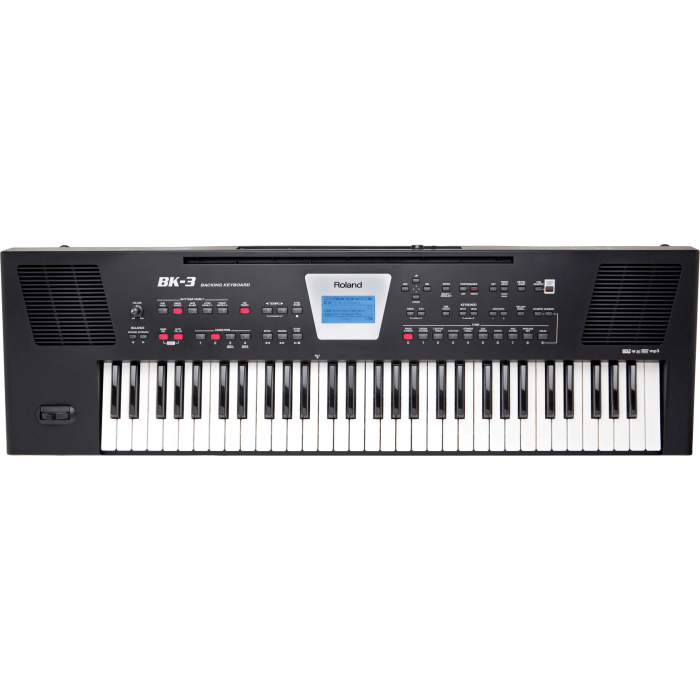 Roland's BK-3 is een zeer gebruiksvriendelijk arranger/recorder keyboard. De aanslaggevoelige toetsen van dit compacte, 61-toetsen keyboard, geladen met een grote selectie geluiden, Musical Assistants en ritmes van over de hele wereld, geven je een dynamische en expressieve speelervaring, terwijl de ingebouwde effecten de meer dan 800 geluiden nog rijker maken. De ingebouwde stereoluidsprekers van de BK-3 geven je een op zichzelf staande performance machine, en je kunt je performance zelfs rechtstreeks vanaf de BK-3 via USB opnemen. Als je op zoek bent naar een alleskunner, dan heb je hem gevonden: de Roland BK-3.