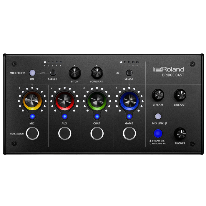 De Roland Bridge Cast is een apparaat dat zich richt op "Pro Sound for Pro Gamers". De Bridge Cast is een combinatie van een audio interface, mixer en podcast-apparatuur en geeft een significante verbetering aan je geluid. Het biedt ook de mogelijkheid om professionele live streams te maken.