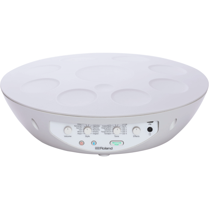 Met negen drukgevoelige pads speel je melodieën intuïtief met je vingers. Elke pad kan aan een toonladder worden gekoppeld, zodat je altijd zuiver speelt. Gebruik ook je handpalmen voor percussieve geluiden en speel met klankdemping of toonvariatie via de speciale bedieningspad. Kies uit een reeks akoestisch geïnspireerde geluiden zoals de handpan, tongue drum, gamelan, klankschaal of kristalen schaal. Daarnaast zijn er ook unieke klanken beschikbaar zoals sitar, strijkers en zachte synthpads. Vier gebruikersslots bieden ruimte voor aangepaste geluiden.