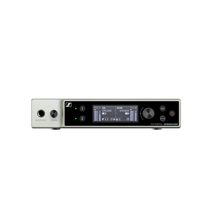 De Sennheiser EW-DX EM 2 Q1-9 is een 2-kanaals half rack ontvanger voor gebruik met Evolution Wireless Digital hand- en zakzenders. Deze reeks staat bekend om bijvoorbeeld de laagste latentie op de markt, equidistante frequentieafstand en een ultrabreed input dynamisch bereik (IDR).