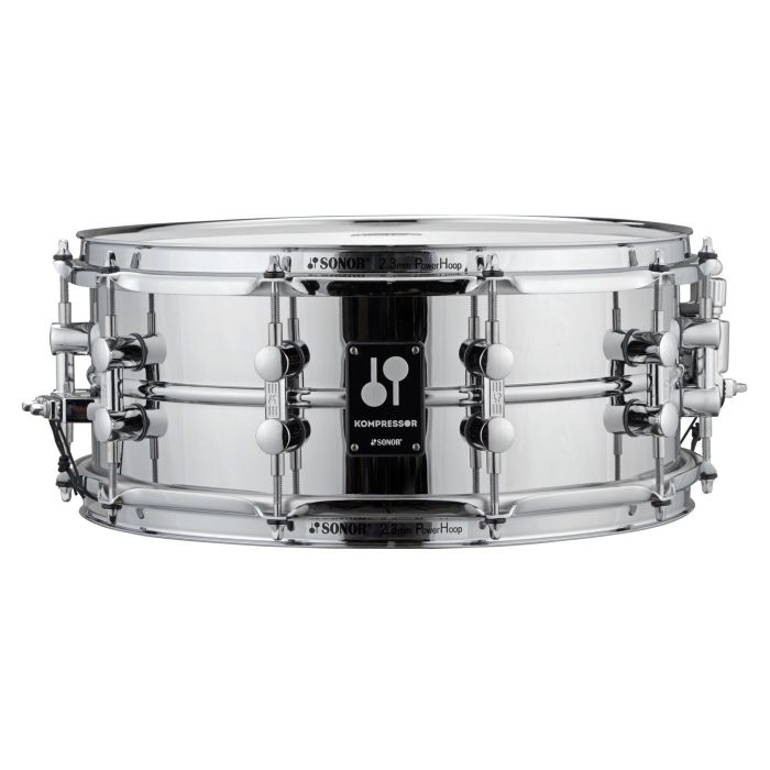 Deze Kompressor snaredrum heeft een 1mm dikke stalen ketel met een maatvoering van 14x5.75", tien Sonor TuneSafe double lugs, Steel Power Hoops en Sonor standard throw off. Sonor spendeert binnen het ontwikkelingsproces van alle drums extra tijd aan het nauwlettend fine tunen van maatvoeringen vs materialen; een traject dat zij Optimum Shell Measurements (OSM) noemen. Zo zijn Sonor ketels ietsje kleiner in diameter dan de opgegeven maat, waardoor de vellen optimaal kunnen resoneren. Daarmee geeft de 5.75" diepe stalen ketel een felle gedefinieerd snare geluid met veel rijke boventonen stick definition. Hierdoor is de snare ook zeer geschikt om wat hoger van pitch te stemmen. Veelzijdig, maar bovenal ook zeer geschikt voor de drummer die gecontroleerd en subtiel kan spelen en zodoende goed gebruik maakt van de rijke klank van de stalen snaredrum.