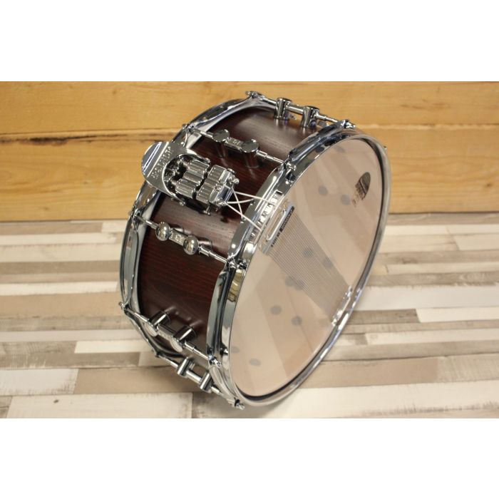 Deze Prolite snare heeft een 6 ply / 4 mm dikke cross laminated maple shell met 3 ply / 2 mm dikke reinforcement hoops, meet 14x6" en is volledig handgemaakt in Duitsland. Hij heeft tien Sonor TuneSafe double lugs, Steel Power Hoops en Sonor Dual Glide throw off. In het ontwikkelingsproces van alle drums besteedt Sonor extra tijd aan het nauwkeurig afstemmen van afmetingen en materialen; een proces dat ze Optimum Shell Measurements (OSM) noemen. De shells van Sonor hebben bijvoorbeeld een iets kleinere diameter dan de gespecificeerde maat, waardoor de koppen optimaal resoneren.