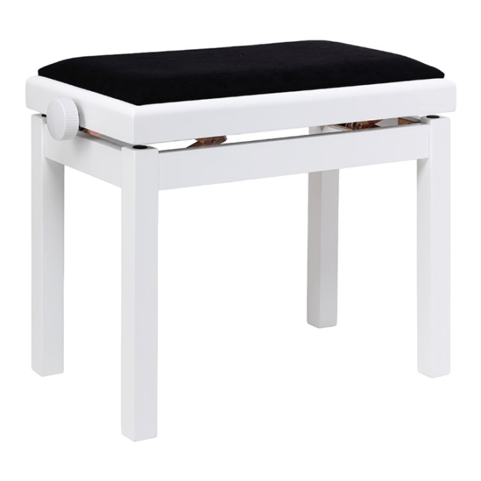 De Stagg PB06G WHM VBK is een solide, mat witte pianobank met zwarte velours bekleding. De pianobank is in hoogte verstelbaar. De pianobank heeft een comfortabele zitting.