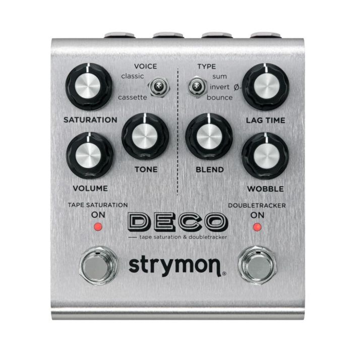 Strymon Deco V2 Tape Saturation & Doubletracker is de nieuwe versie van dit pedaal waarmee je dezelfde mogelijkheden en hetzelfde warme geluid krijgt als analoge tape recorders uit de tijd van the Beatles. Deze nieuwe versie heeft een Tone knop en een Voice knop waarmee je kunt kiezen tussen klassieke en cassette verzadiging en daarnaast een aantal hardware verbeteringen.